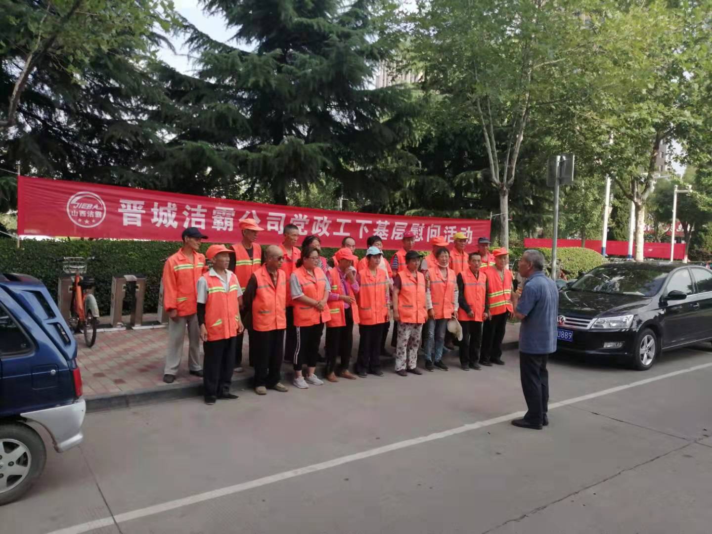 7月23日,是傳統(tǒng)的二十四節(jié)氣的大暑。下午,晉城潔霸公司黨政工慰問活動(dòng)小組來到了暑期“情系一線”下基層慰問系列活動(dòng)的第二站鳳西廣場(chǎng),看望并慰問了辛勤奮戰(zhàn)在環(huán)衛(wèi)一線的員工,給他們送上清涼,送上關(guān)愛。