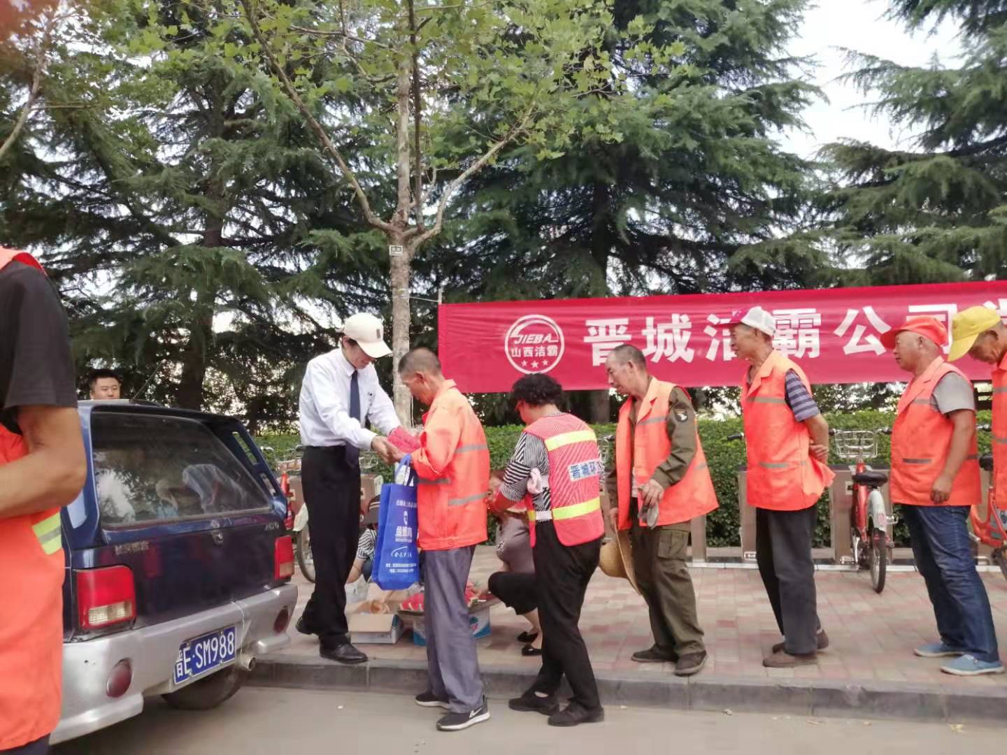 “大家辛苦了!”工會(huì)崔主席面對(duì)站在對(duì)面的滿臉汗水的環(huán)衛(wèi)員工深深一鞠躬,向高溫下奮戰(zhàn)在一線的環(huán)衛(wèi)員工們表示感謝。崔主席說,大家從事的環(huán)衛(wèi)工作雖苦、臟、累,但是大家心靈美,創(chuàng)建全國(guó)文明城市有咱的功勞,這是咱們潔霸的榮耀!他叮囑隨行的保潔部主管,在炎熱的夏季要時(shí)刻關(guān)心一線的員工,多傾聽員工的心聲,積極為他們做好后勤保障工作。他囑咐環(huán)衛(wèi)員工們,在高溫下作業(yè)要做好防暑降溫工作,確保自身健康安全。工作中要積極配合主管,共同把工作干好。