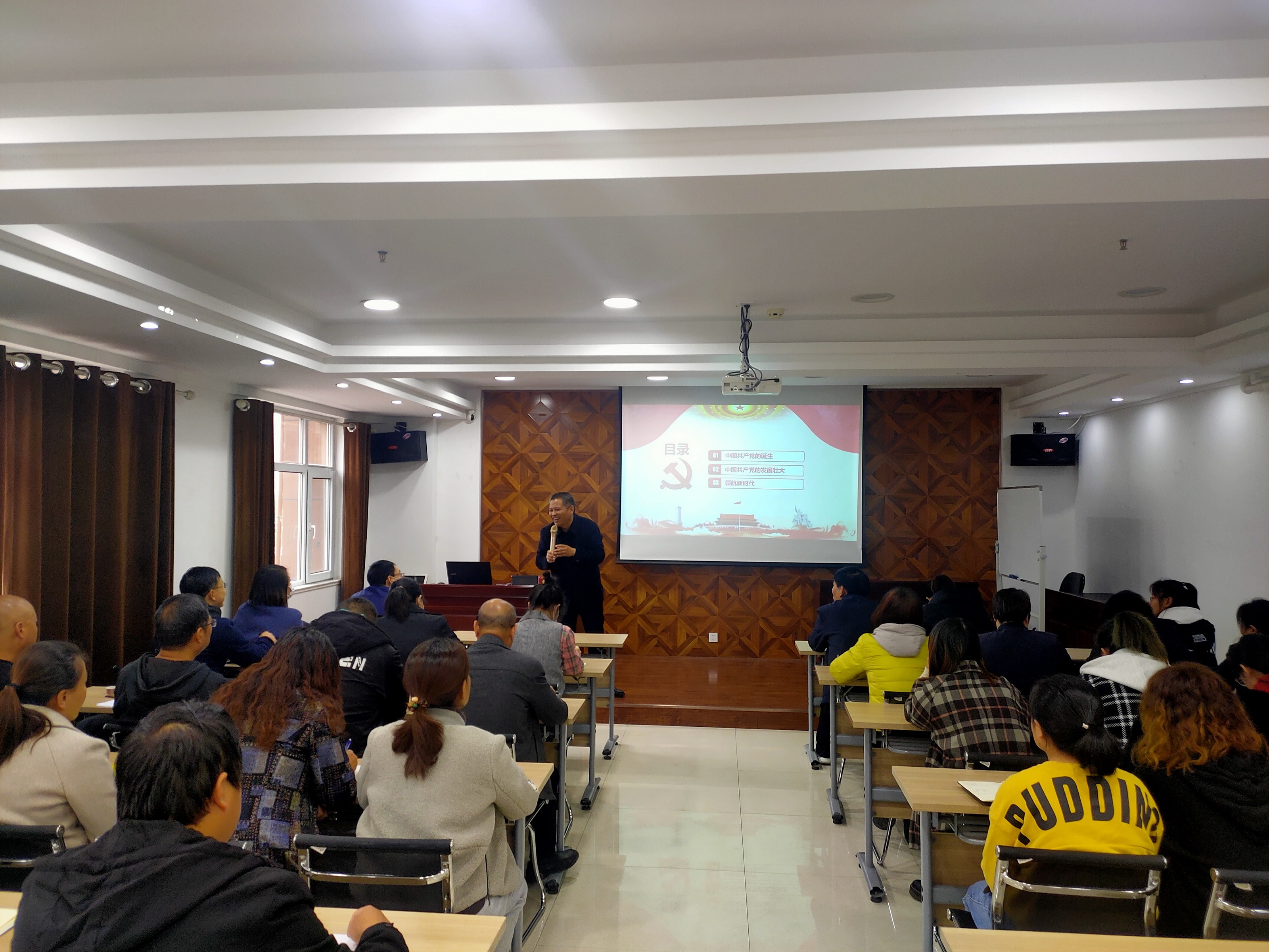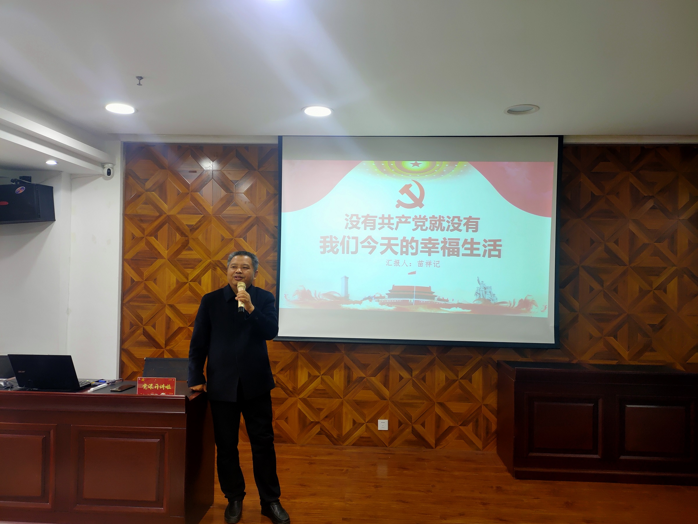 黨課中,苗祥記校長以“沒有共產(chǎn)黨就沒有我們今天的幸福生活”為主題,從1901年清政府簽訂喪權辱國的《辛丑條約》講起,引用大量翔實、生動的歷史資料,對“十月革命”、中國共產(chǎn)黨的誕生、創(chuàng)建井岡山革命根據(jù)地、遵義會議、中共中央在延安、中共七大、中共建設社會主義的偉大成就等歷史場景為大家作了系統(tǒng)全面的講解,全景式展現(xiàn)了中國共產(chǎn)黨的誕生、歷經(jīng)淬煉而逐步發(fā)展、成熟、壯大以及領航新時代的的偉大歷程,闡述了中國共產(chǎn)黨的初心、使命和宗旨,讓與會人員更直觀更深刻認識到?jīng)]有共產(chǎn)黨就沒有我們今天的幸福生活,經(jīng)受了一次深刻的紅色文化洗禮。